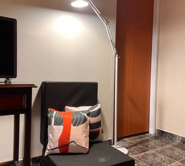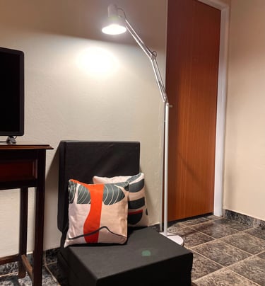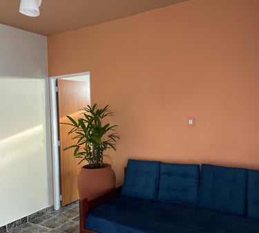 Sala aconchegante, inclui um sofá-cama, luminária, puff, netflix e mais...